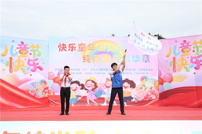 5月30日上午,广安市护安镇小学的操场上国歌声嘹亮,一场主题为“青苗小筑 护安成长”的志愿服务暨儿童节活动在四川省广安市前锋区护安小学温暖开启,一群青年志愿者为孩子们送上了一份融合“专业力量”与“暖心关怀”的特别节日礼物。